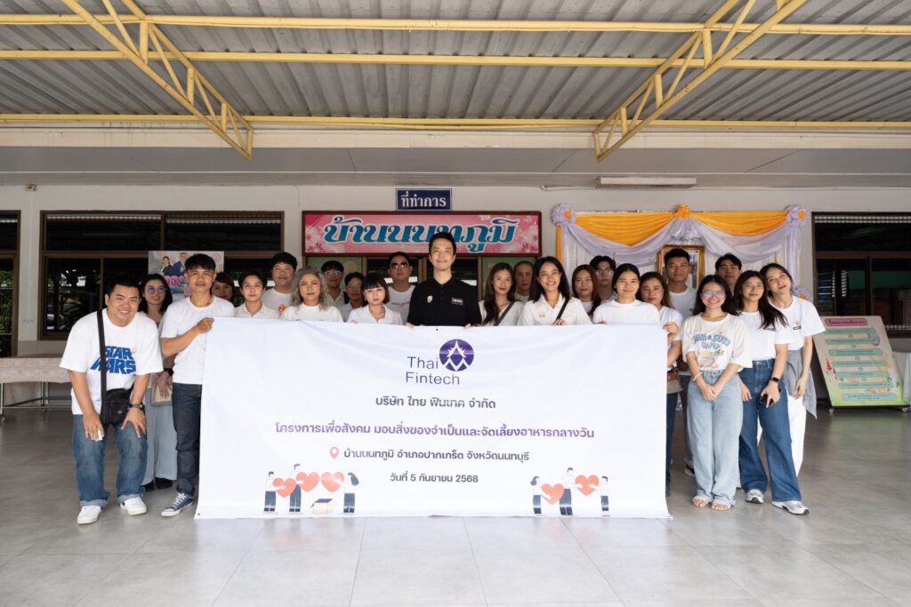 Zhongzhao) กรรมการบริษัท ไทย ฟินเทค จำกัด พร้อมด้วยคณะผู้บริหารและพนักงาน ร่วมมอบสิ่งของจำเป็น เวชภัณฑ์ และอาหารกลางวันให้กับเด็ก ๆ ที่ สถานคุ้มครองและพัฒนาคนพิการบ้านนนทภูมิ และ บ้านเฟื่องฟ้า จังหวัดนนทบุรี ซึ่งดูแลเด็กพิการทางร่างกาย สติปัญญา และการเรียนรู้